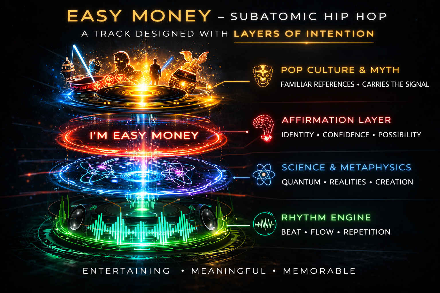 Easy Money is the debut release of Subatomic Hip Hop — an abundance activation track designed to shift your mindset from scarcity to sovereignty.
